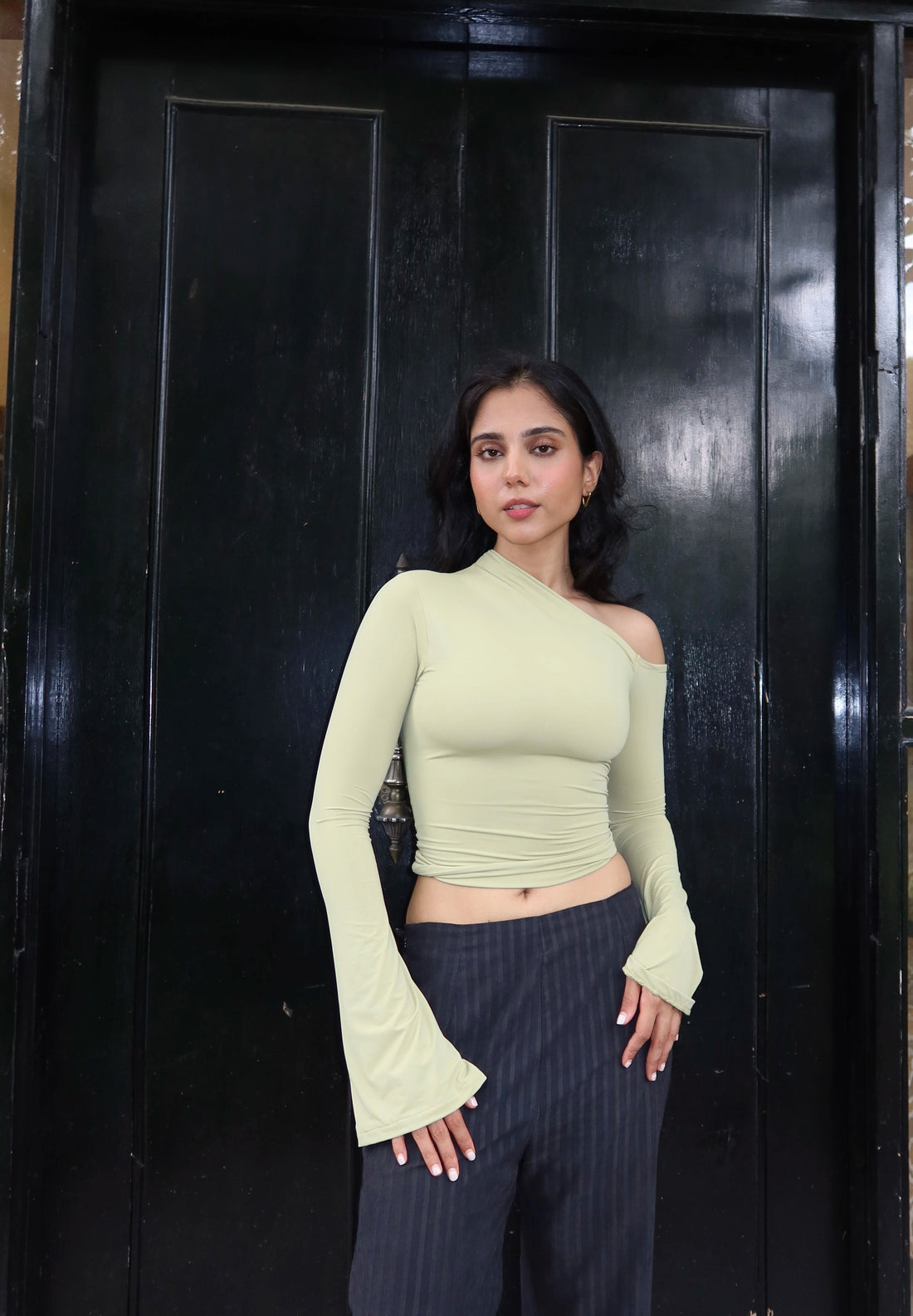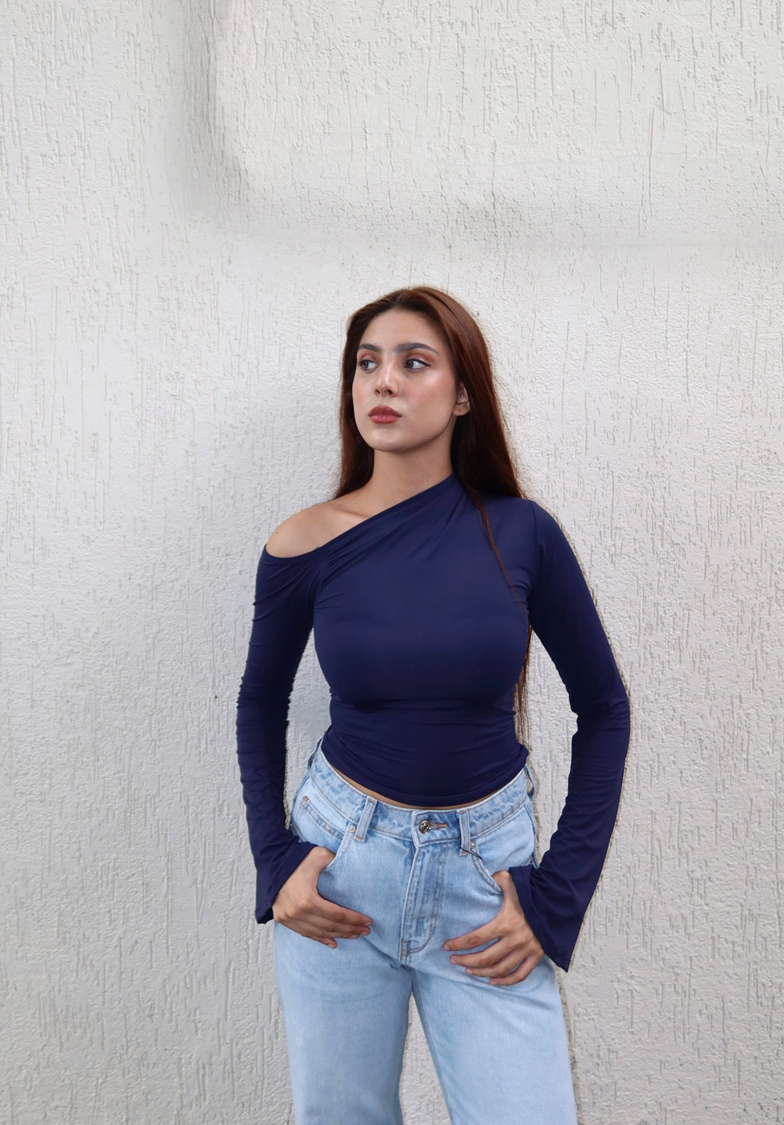 Effortlessly chic, this one-shoulder top features a sleek fit-to-flare sleeve design, crafted in premium poly...
