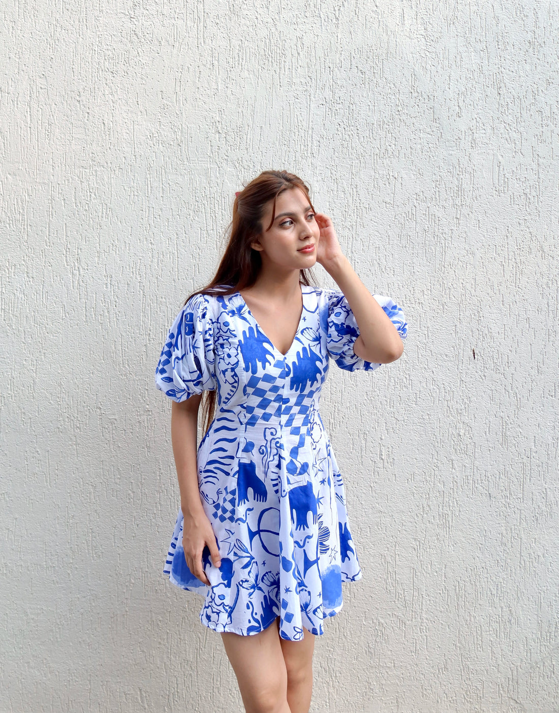 Bright, breezy, and full of character—the Diana Mini Dress features playful illustrations and a flattering...