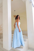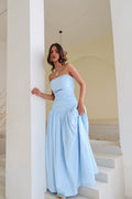 Make a graceful statement with this elegant powder blue strapless gown. The bodice features subtle ruching that accentuates the waist and provides a flattering fit, while the full, flowy skirt adds a touch of romance and drama. The soft, serene hue and minimalist design make this gown a versatile choice for formal occasions, whether it’s a wedding, prom, or evening gala. Pair it with your favorite statement jewelry and heels for a complete look that exudes sophistication and timeless beauty.