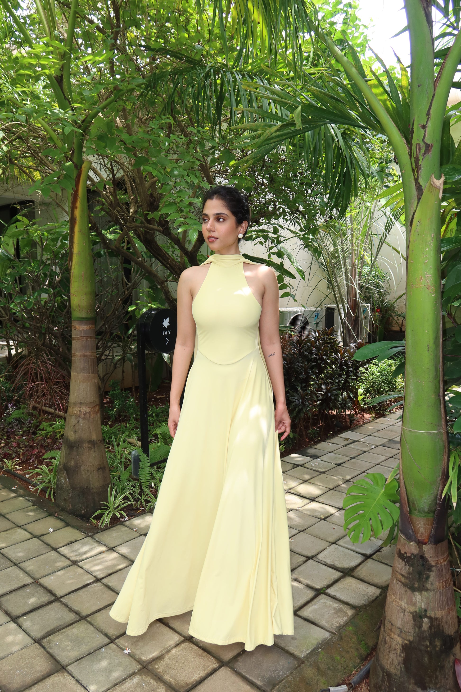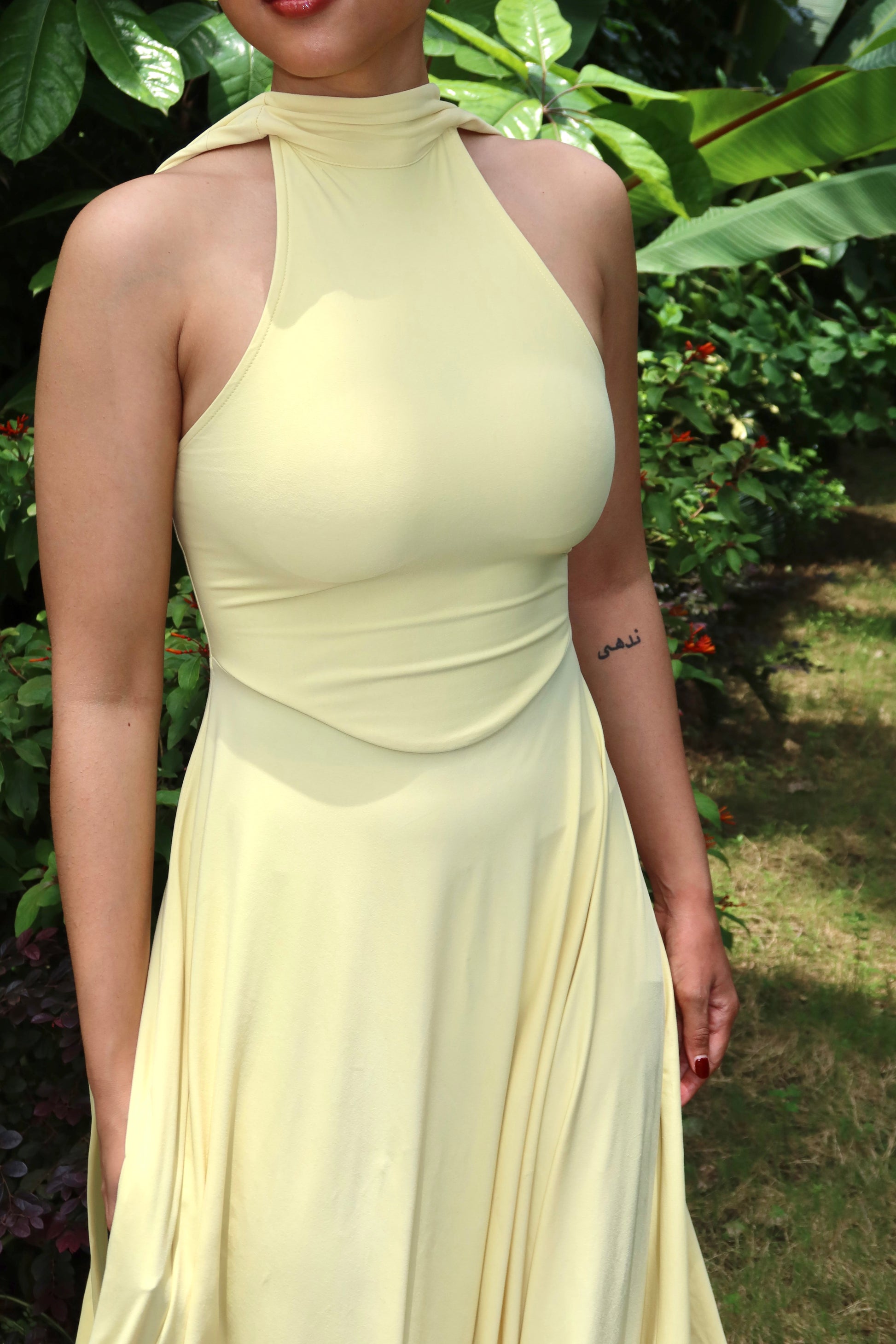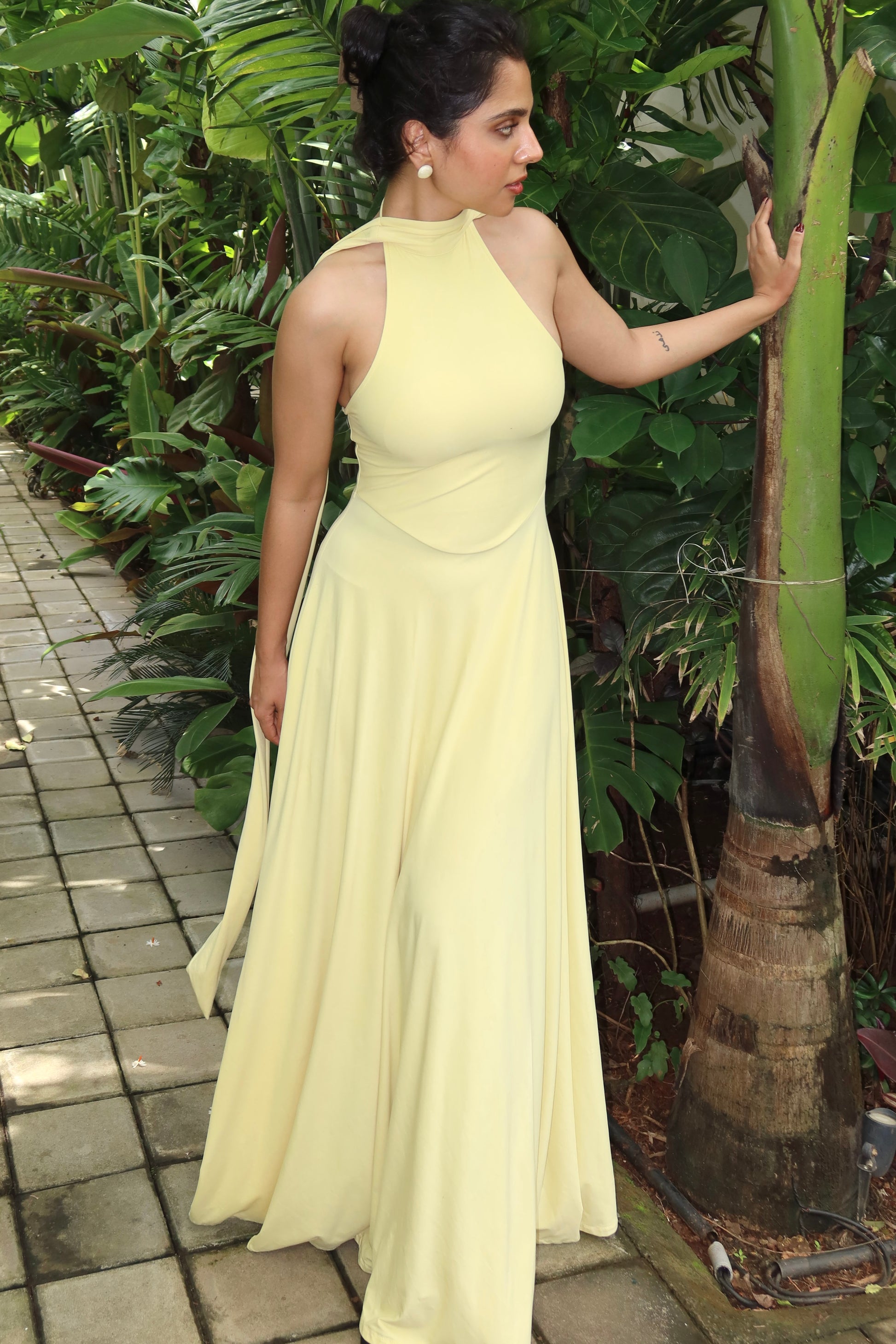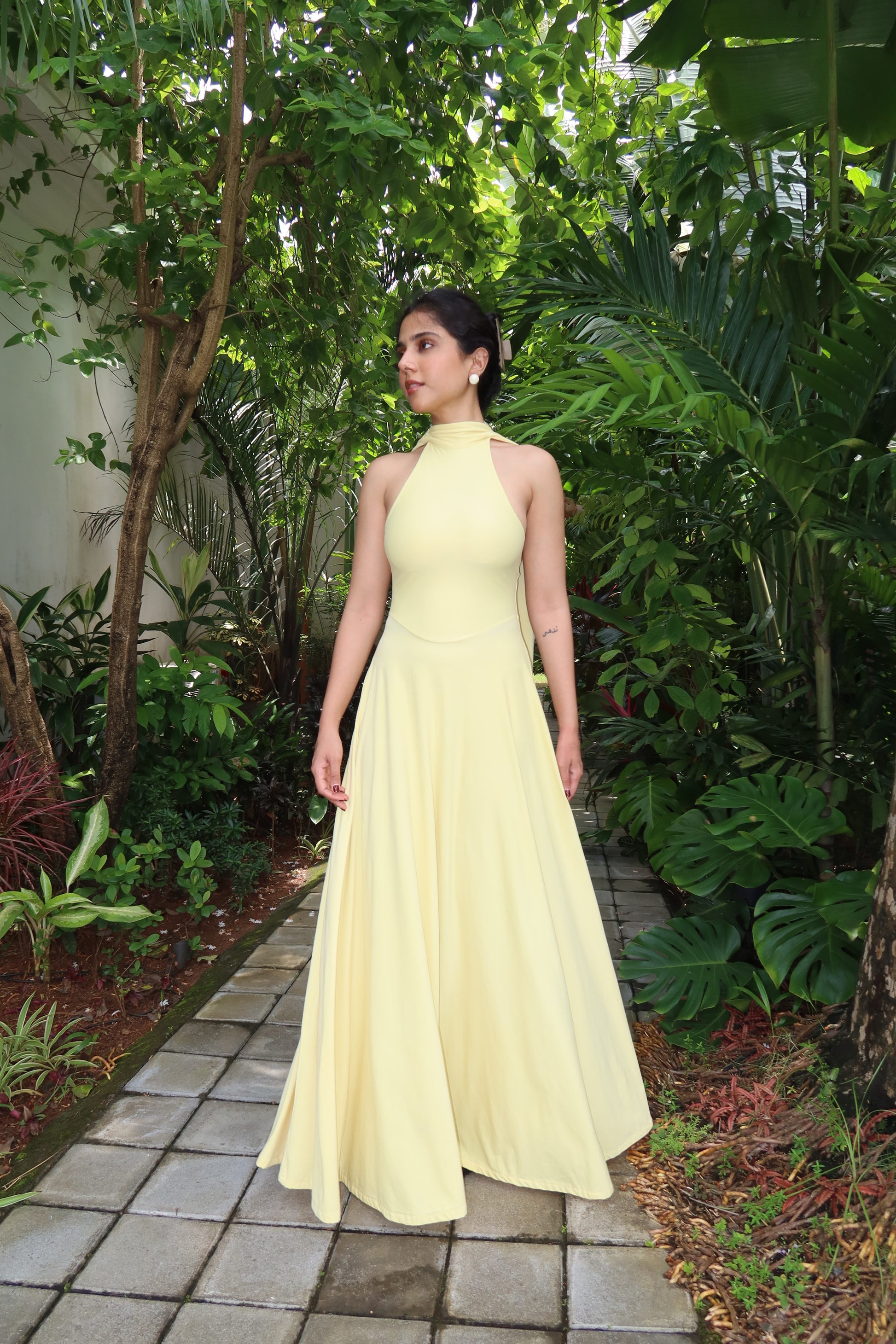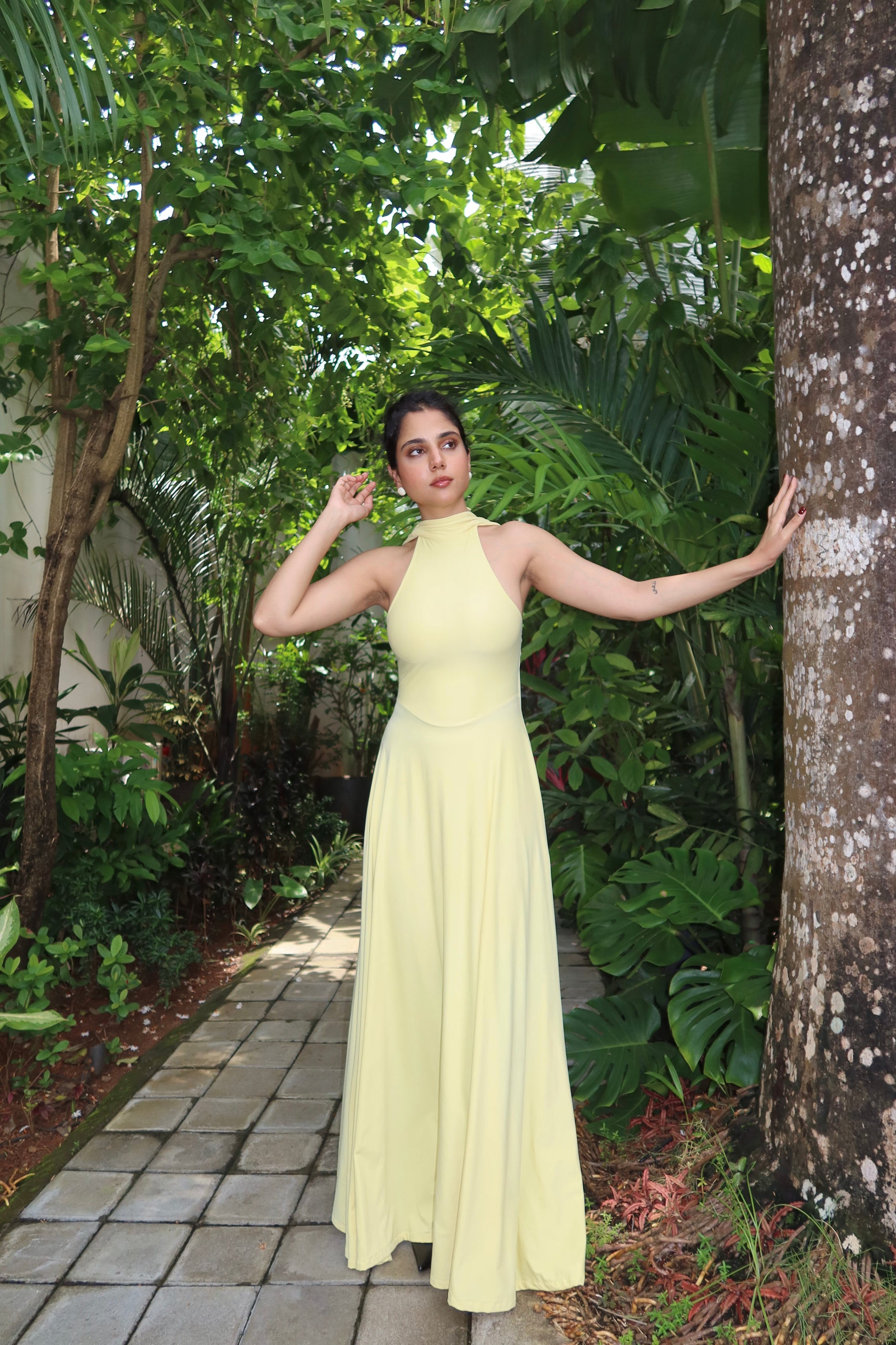 Radiant and fluid—the Halter Maxi Dress is designed in a soft, stretchy fabric with a graceful drape. Featuring a high neckline, tie-up back, and a full sweeping skirt, it moves beautifully with every step. Elegant yet effortless, it’s perfect for sunny escapes or evening soirees