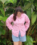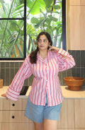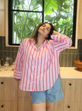 Classic with a twist—the Striped Back-Tie Shirt features an oversized fit with wide cuffs, a crisp button-down front, and a back string to cinch the waist for a more defined silhouette. Versatile and chic, it can be styled relaxed or fitted depending on your mood.