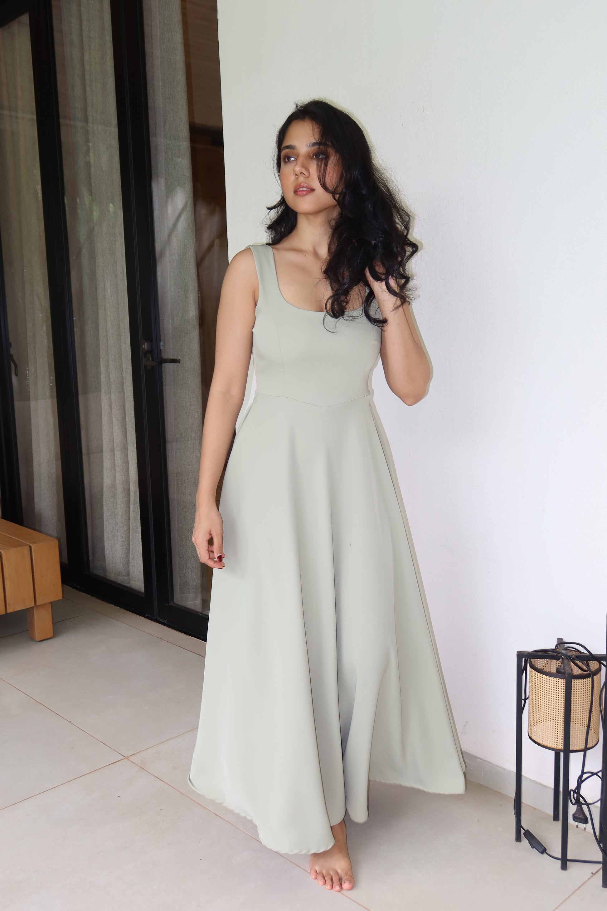 Minimal yet striking, our best selling choe dress in new colour options —the Scoop-Neck Maxi Dress features a clean neckline, fitted bodice, and a flowing full-length skirt that moves with ease. Designed in a soft, structured fabric, it balances elegance with everyday wearability.