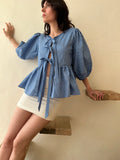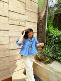 Say hello to effortless style and comfort for the perfect adventure. Made from 100% cotton, this top offers breathability and comfort even on the hottest days. The gathered tie up bows & peplum hem adds a flattering and graceful drape to complete your effortless look. Style it with the jade skirt for that cutest look!