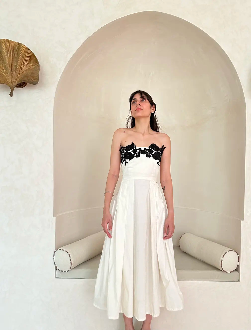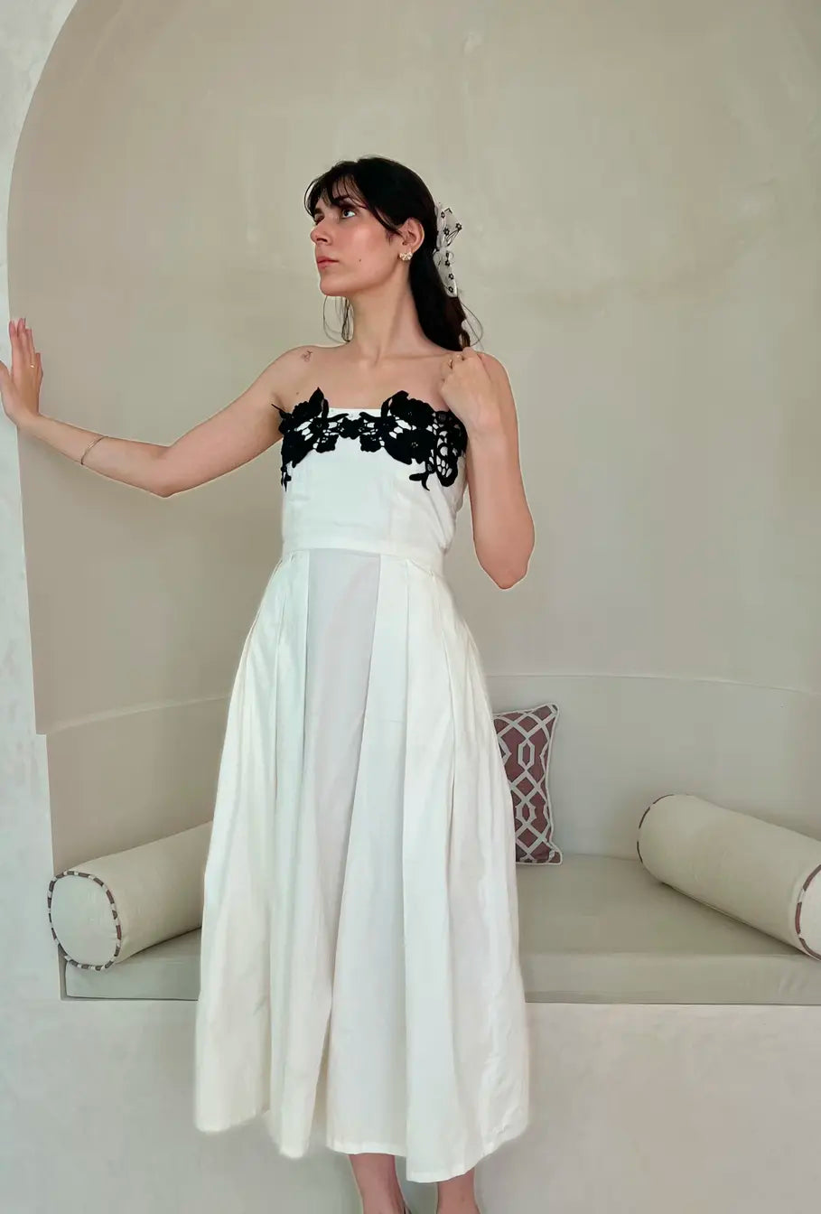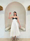 With an enduring beauty that’s impossible to resist, the Elsa dress is a timeless wardrobe icon made to be loved for a lifetime. With an elegant silhouette that fits on the upper body and sweeps gracefully, it’s crafted from a luxurious stretchable cotton and embellished with appliqué flowers.