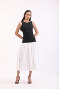 Your favorite Faith dress has had a modest makeover with the tank top style bodice. Made with four way stretch Lycra with the contrasting cotton poplin skirt, The faith dropwaist will take you from day to night with ease. Style it with strappy sandals for a casual look, or dress it up with your favourite pair of heels.