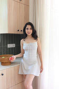 Playful and flattering—the Polka-Dot Top features slim straps, a ruched bust with tie detailing, and a body-skimming fit in soft stretch fabric. Designed to pair effortlessly with the matching skirt or styled on its own, it’s a versatile wardrobe essential.