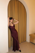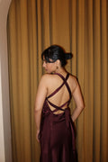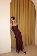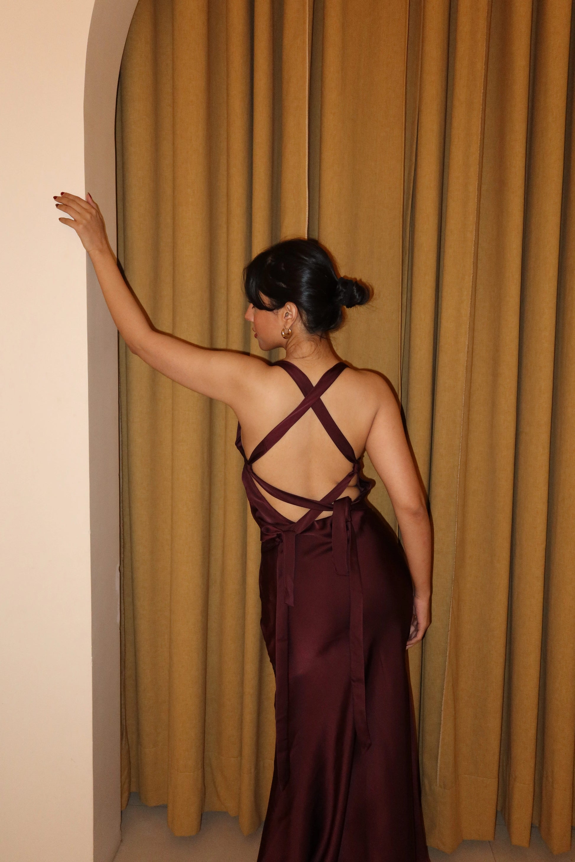 Crafted from luxurious satin, the dress features a bias-cut design for a flaterring silhouette with the prettiest backless design. Perfect for special occasions!