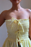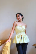 This breezy sleeveless top features a smocked bodice for a snug fit, dainty tie-up detailing down the front, and a soft peplum hem that adds a playful touch. Lightweight and stylish, it’s perfect for brunch, summer strolls, or casual evenings out.