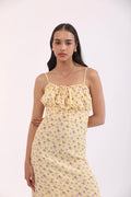 Step into effortless elegance with your new favourite throw on dress. In a soft yellow with delicate florals, this dress features a flirty gathered neckline and adjustable straps. The flowing silhouette offers both comfort and charm, making it perfect for brunch, garden parties, or warm evening strolls. Pair with strappy heels for a head-turning look!