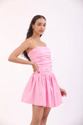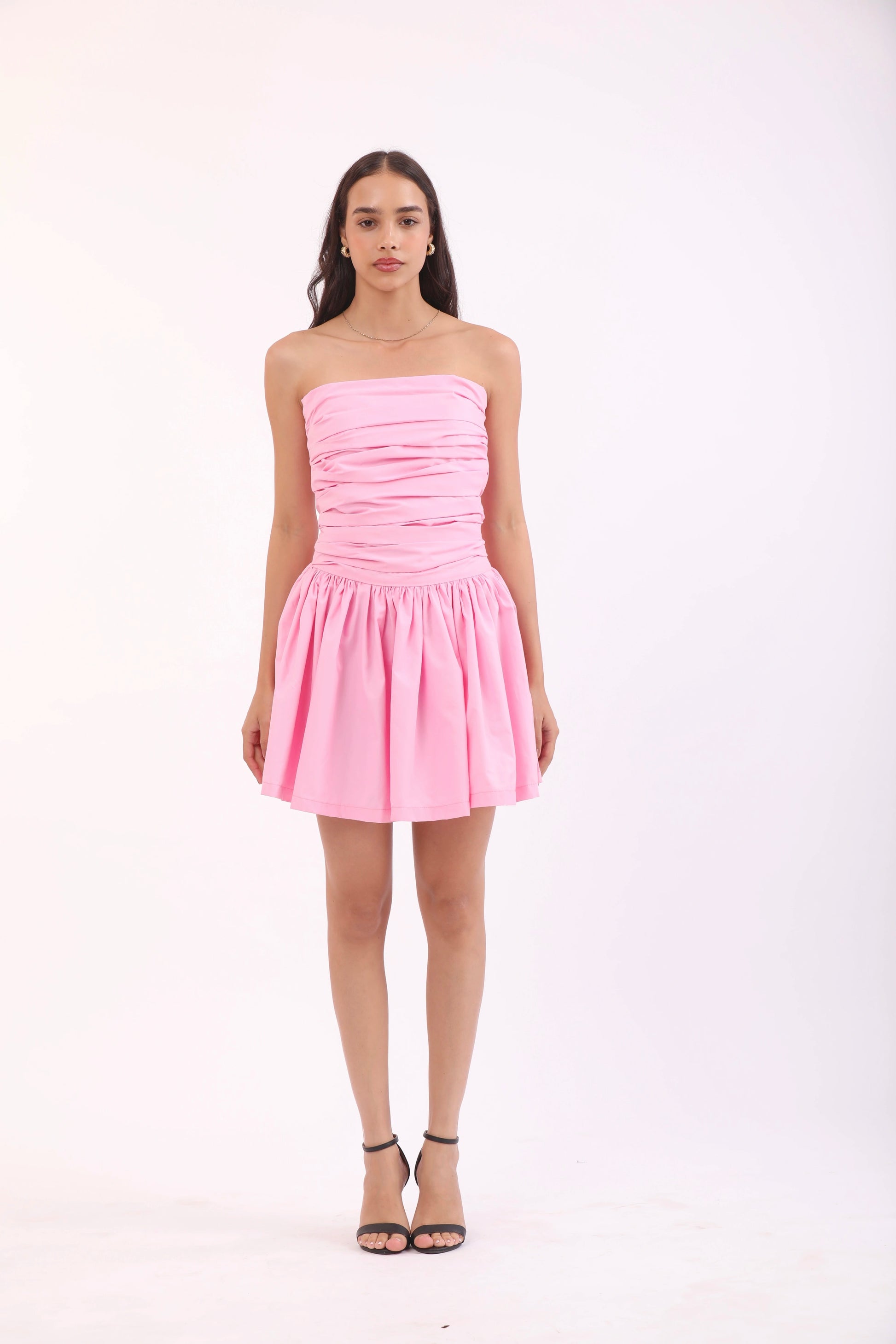 The bodice features subtle ruching that accentuates the waist and provides a flattering fit, while the full, flowy skirt adds a touch of romance and drama. Pair it with your favorite statement jewelry and heels for a complete look that exudes sophistication and timeless beauty.