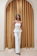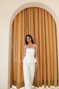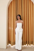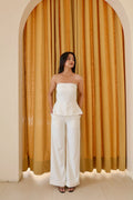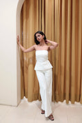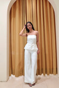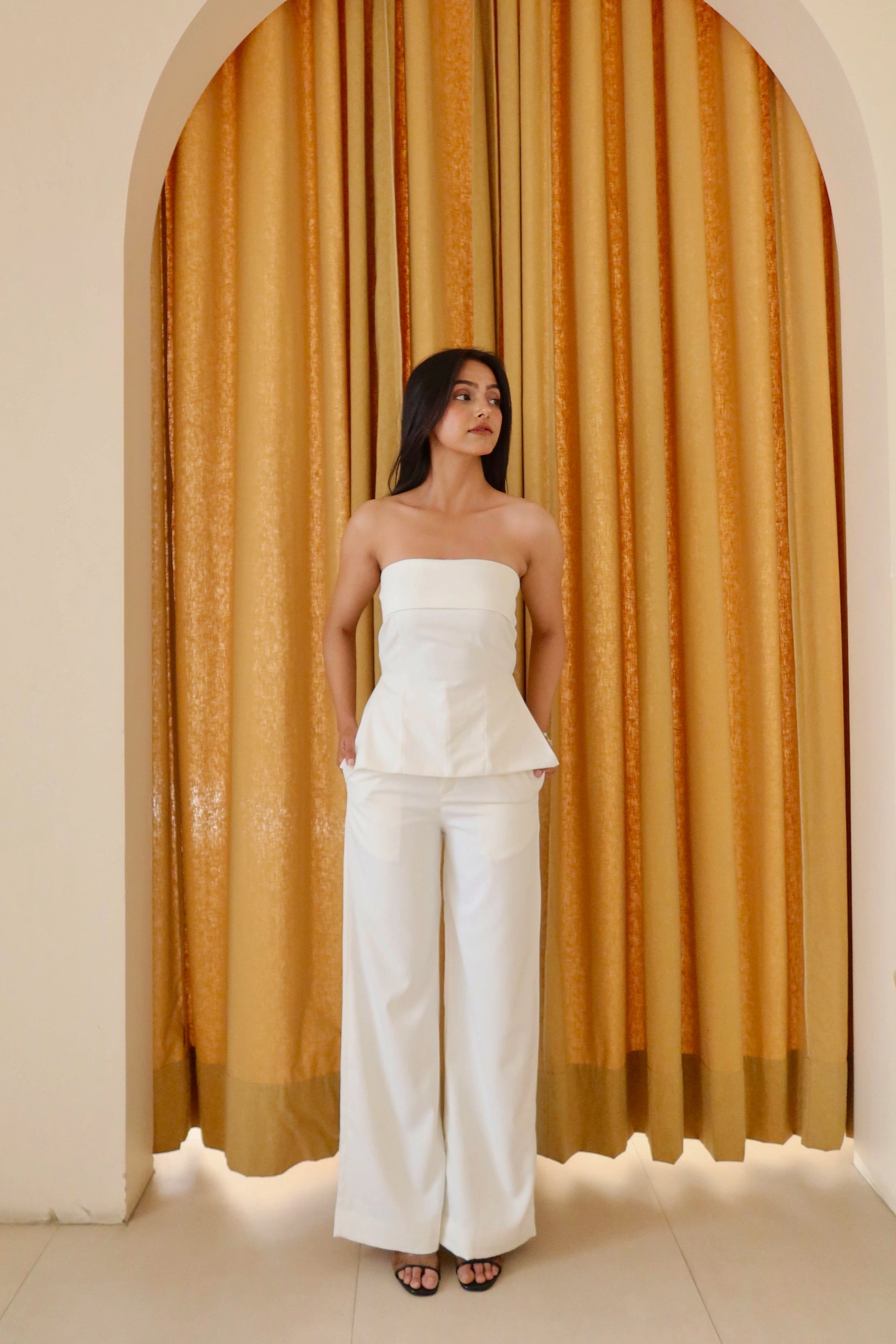 Effortlessly polished—this strapless top and wide-leg pants set is a minimalist dream. Best styled with the shell tube top