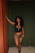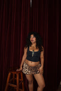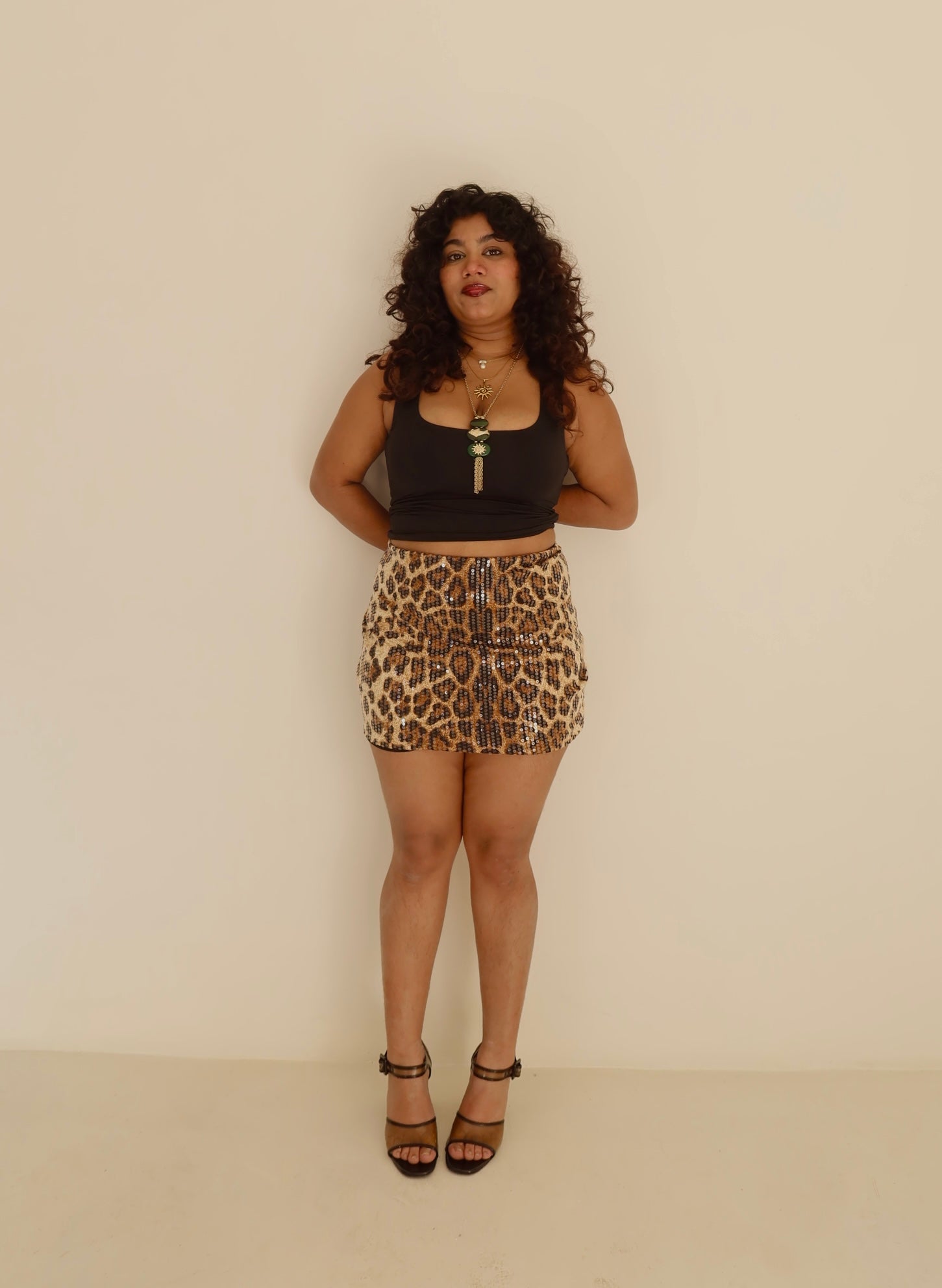 Clean-cut leopard mini in a stretch sequin fabric with a smooth, body-skimming fit. Simple and easy to style.